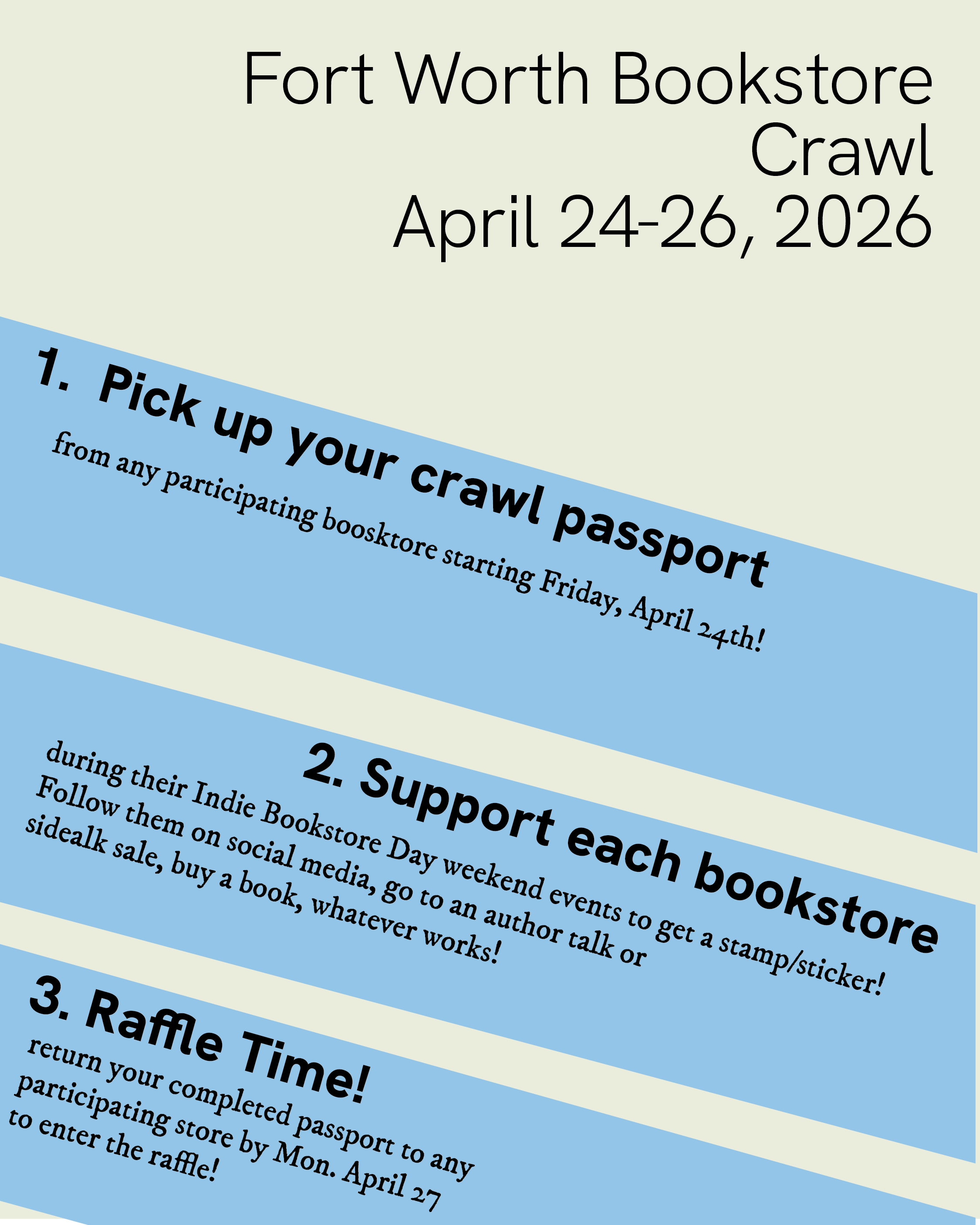 Indie Bookstore Day & Fort Worth Bookstore Crawl Saturday, April 25, 2026 9:00 AM 6:00 PM Google Calendar ICS